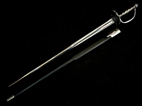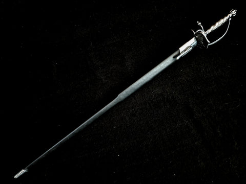 The tapered design of the blade allowed for the tip to be nimble and aggressive, while the extra wide forte at the base allowed the wielder to parry even heavier blades. This weapon was particularly popular among officers fighting in North America and was so overwhelmingly popular that one was gifted to George Washington at his inauguration as the first president of the United States.