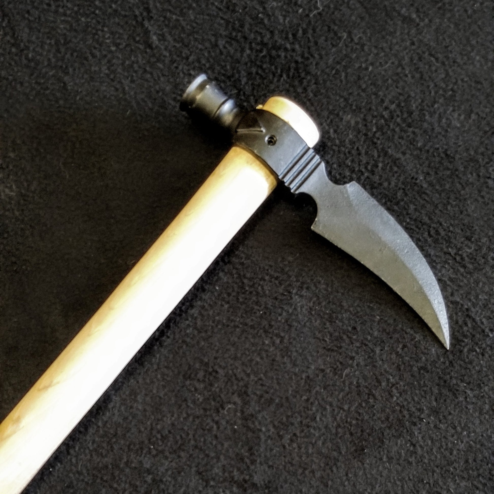 While most tomahawks are chopping tools there was a less popular alternative known as a spontoon hawk. Made with a blade expressly designed for piercing it was capable of delivering deep puncture wounds that were quite lethal. Often found with a sloping or diamond shaped point and sharpened on both
